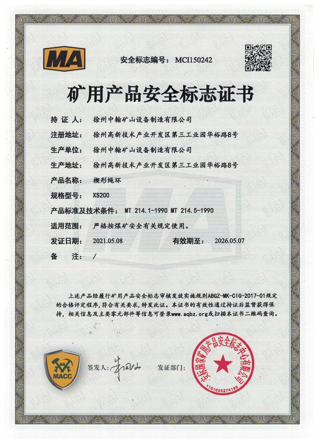XS200楔形繩環煤安證書